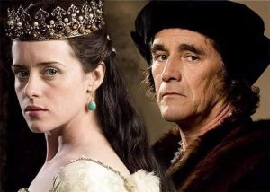 Mark Rylance as Cromwell & Claire Foy as Anne Boleyn, in ‘Wolf Hall’